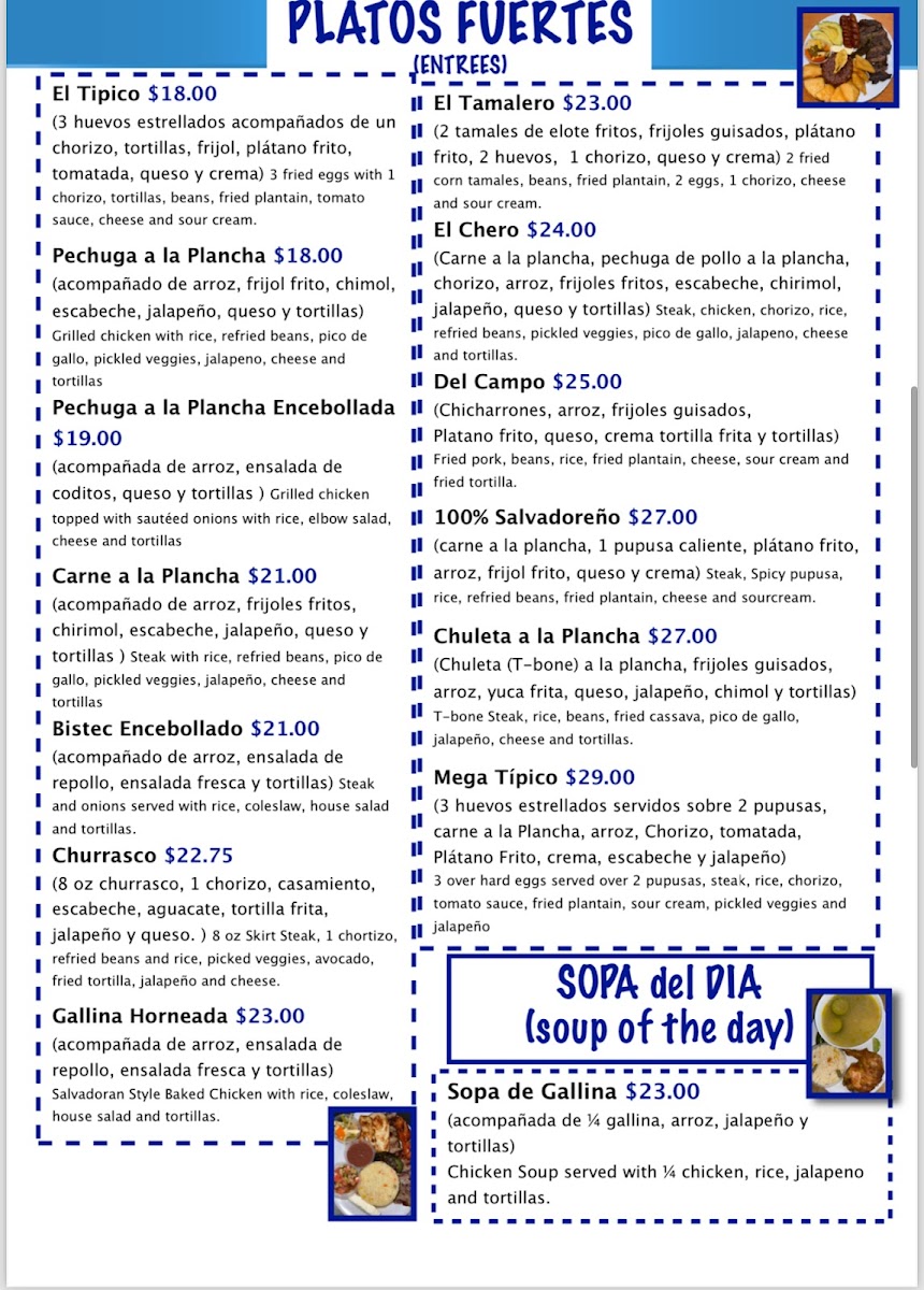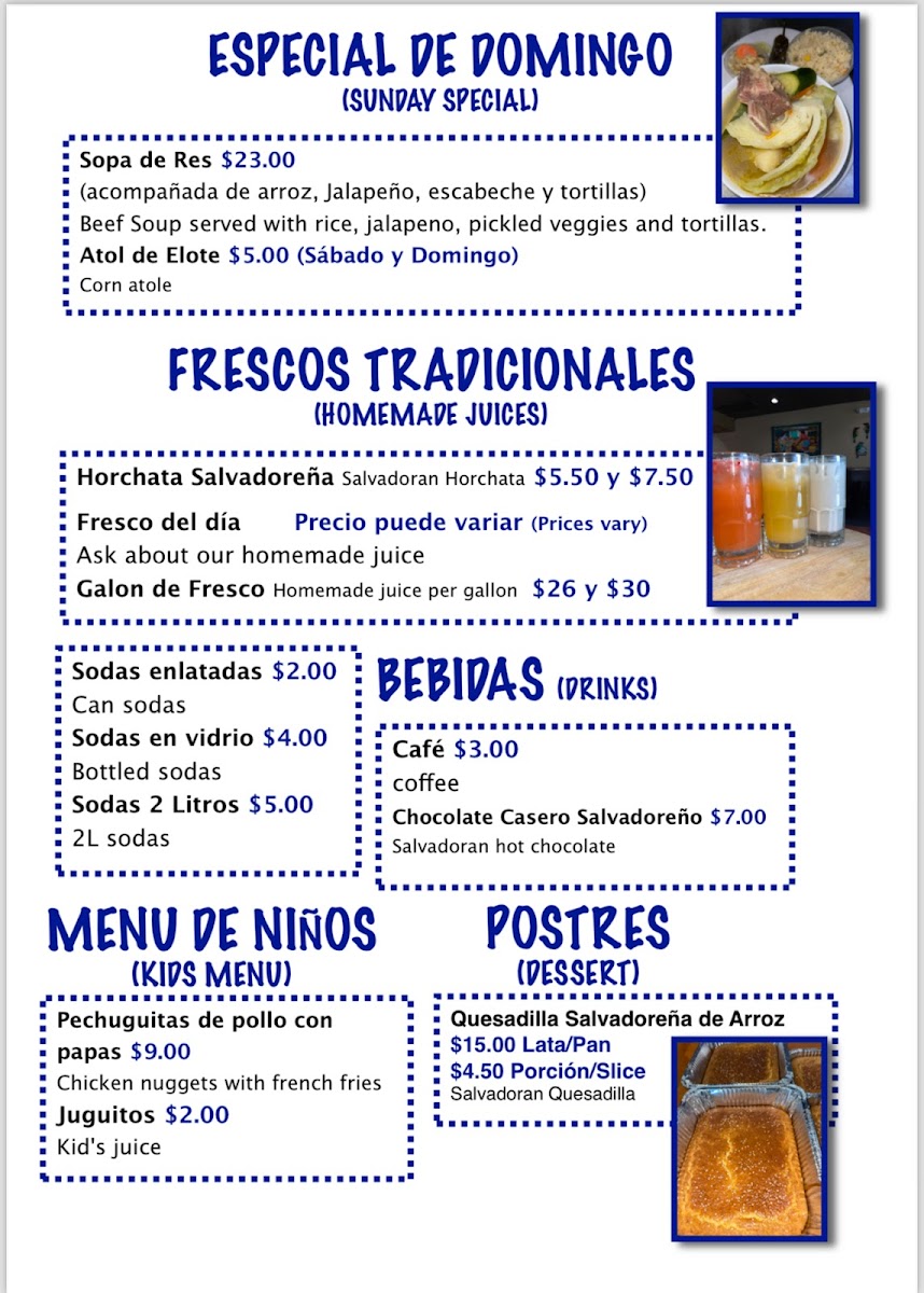 The menu features an array of mouthwatering options, with the pupusas stealing the spotlight. Customers rave about their generous size and delightful fillings. Other highlights include enchiladas salvadoreña and a variety of fresh fruit juices, with the pineapple punch receiving particular praise. Diners appreciate not just the food but also the genuine service that makes each visit special.
