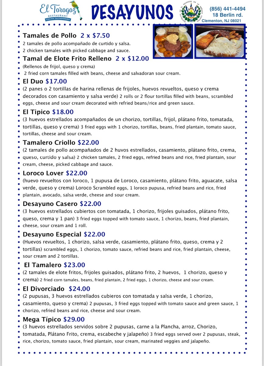 Welcome to EL TOROGOZ RESTAURANT, a charming gem nestled at 18 Berlin Rd, Clementon, NJ. Specializing in authentic Salvadoran cuisine, this eatery beckons food lovers with its warm, family-like atmosphere and dedication to freshly prepared dishes.